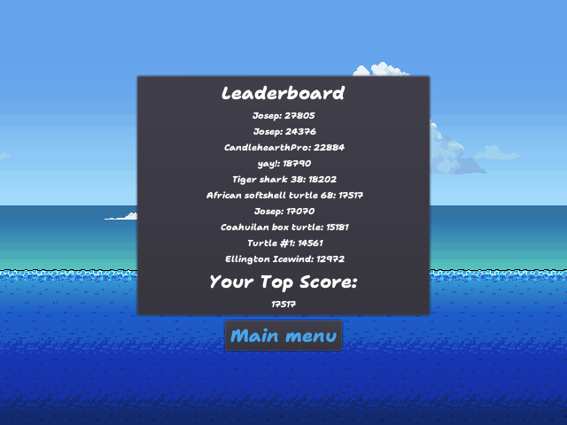 In this game you play as a sea turtle. The oceans have become a deadly gauntlet. Industrial fishing, endless plastic pollution, and deep sea mining operations have transformed your home into a battlefield. Hunt for food, defend yourself against relentless threats, and survive as long as possible. This isn't just about survival, it's about reclaiming the ocean.